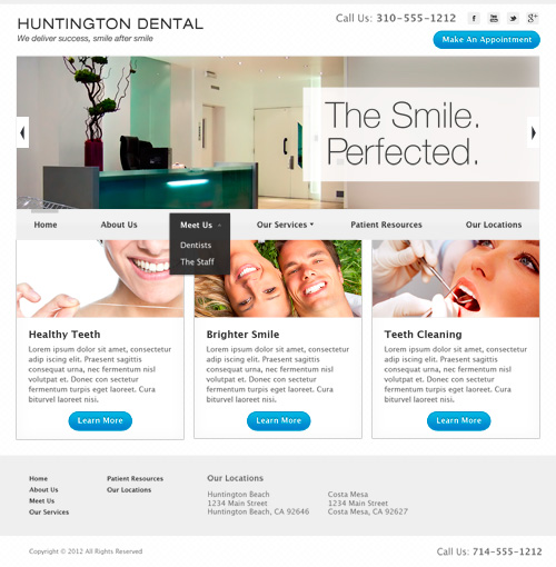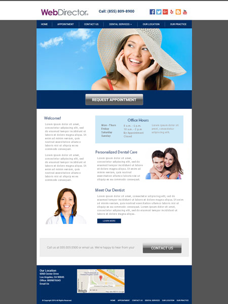 WebDirector lets you choose from over 35 dental website designs. Our templates are easily customizable to give your practice a unique, completely modern web presence. Change colors, text and photos however you like. No special technical expertise is required. And, it costs nothing extra for your new, custom design to appear on your mobile site and social media pages. Need help updating your website? We can do it for you at no extra charge.